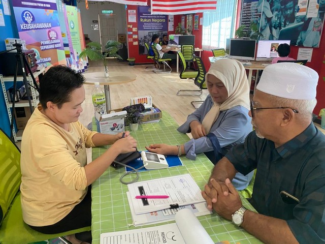 7 Disember 2025 | Aktiviti TerkiniPada 06/12/2025 bersamaan dengan hari Sabtu, petugas mengambil kesempatan untuk membuat saringan kesihatan kepada komuniti yang hadir ke pusat NADI Piasau Utara. Tujuan utama saringan kesihatan ini dibuat agar kesemua komuniti yang hadir dapat menyemak tahap kesihatan masing-masing. Dengan alatan yang telah disediakan oleh NADI, iainya dapat membantu komuniti untuk melihat tahap Kesihatan mereka seperti menyemak tahap tekanan darah tinggi, kadar gula dalam badan serta ukuran BMI mereka. Petugas NADI juga turut memberi penerangan tentang pentingnya pencegahan penyakit dan cara-cara mengurangkan risiko penyakit melalui gaya hidup sihat, pemakanan seimbang, dan senaman.