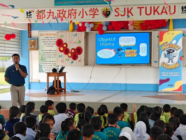 19 November 2025 | Aktiviti TerkiniPada 18/11/2025 bersamaan dengan hari Selasa. MCMC Cawangan Miri (MBO), dengan kerjasama Pusat Sebaran Maklumat Nasional (NADI) Kluster Miri, telah meneruskan pelaksanaan Program Kempen Internet Selamat (KIS) di Sekolah Jenis Kebangsaan Cina Tukau Miri. Objektif program ini adalah meningkatkan kefahaman murid tentang penggunaan internet secara selamat dan beretika. Memupuk kesedaran mengenai had umur yang sesuai dalam penggunaan media sosial. Mendedahkan murid kepada risiko dalam talian seperti perkongsian maklumat secara berlebihan dan buli siber. Seramai 205 pelajar (Tahun 1- 6) telah menyertai program ini.