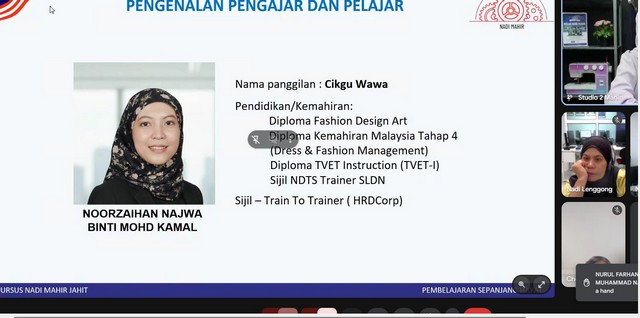 Pada 14/1/2026 bersamaan dengan hari Rabu, seorang peserta dari NADI Piasau Utara telah menyertai sesi webinar kelas MAHIR jahit dimana sesi itu penganjur telah memberi penerangan dan pengenalan tentang topik-topik kelas menjahit untuk musim ke-3 ini.